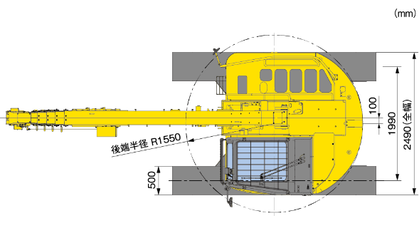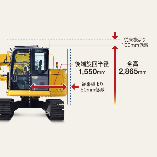 ●後端旋回半径を従来機より50mm低減