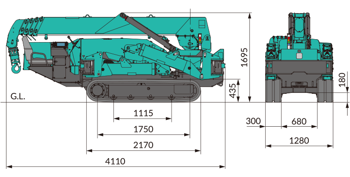 最大張出時には最大性能での作業が可能となり、狭所でも高い作業効率と安全性を両立します。