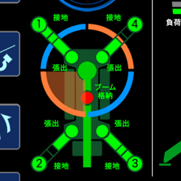 アウトリガの張出状態に応じて定格荷重と作業範囲を自動制御。