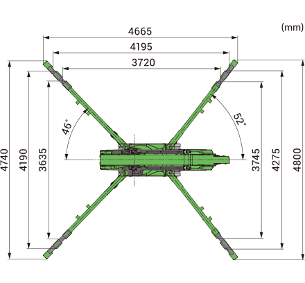 現場の状況に合わせて柔軟に迅速・確実に全自動でアウトリガのセッティングが可能です。