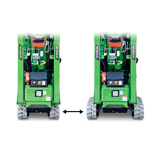 安定性を確保した走行を可能にするとともに、狭い通路の走行や格納にも便利な可変ゲージを採用。