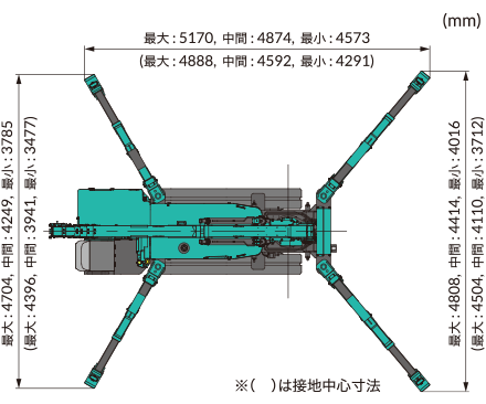 最大張出時には最大性能での作業が可能となり、狭所でも高い作業効率と安全性を両立します。