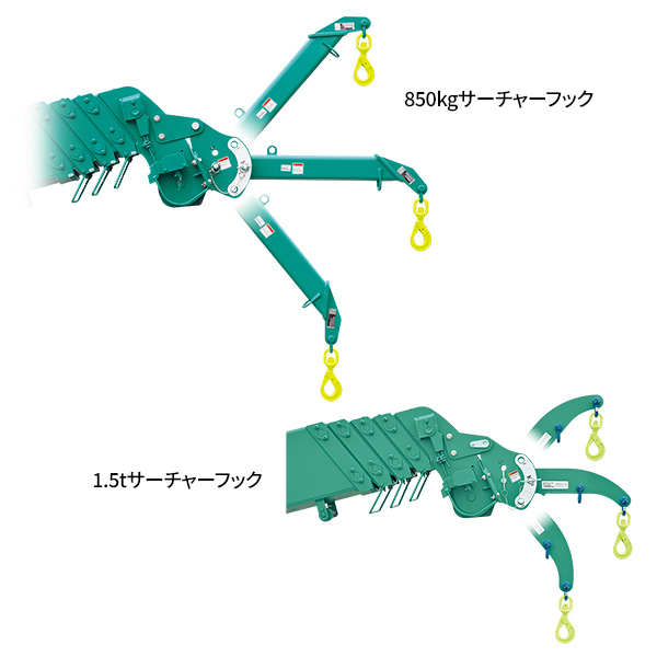 軒下などへのリーチや、ガラス据付作業に便利なサーチャーフックもございます。
