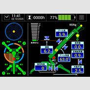 クレーン作業履歴・消耗品一覧などの表示や各種設定ができるマルチモニター。 作業に合わせたモーメントリミッタの設定が可能です。