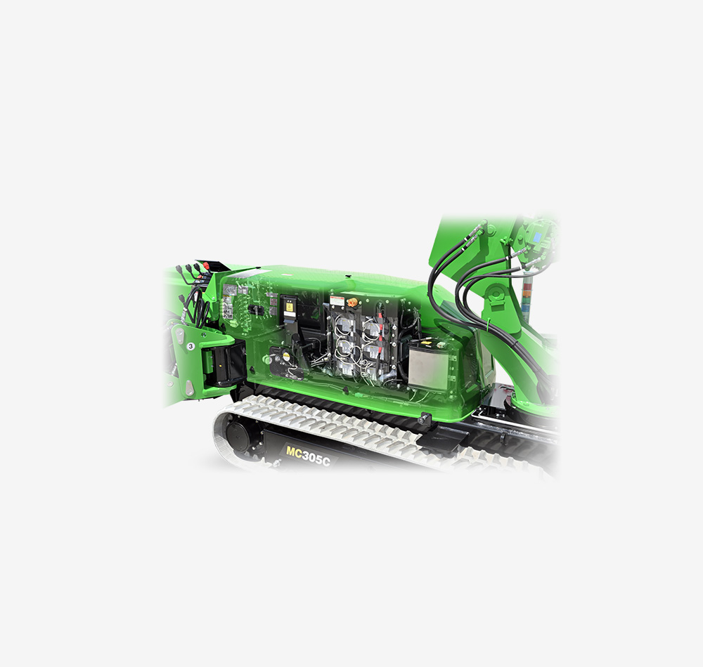最大張出時には最大性能での作業が可能となり、狭所でも高い作業効率と安全性を両立します。