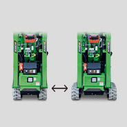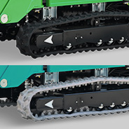 安定性を確保した走行を可能にするとともに、狭い通路の走行や格納にも便利な可変ゲージを採用。