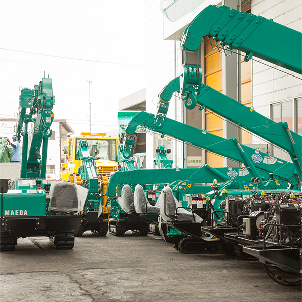このようにして作られるマエダのクレーンは、耐久性が高く、壊れにくいとの評価を世界中から頂いており、お客様に長くお使いいただいています。